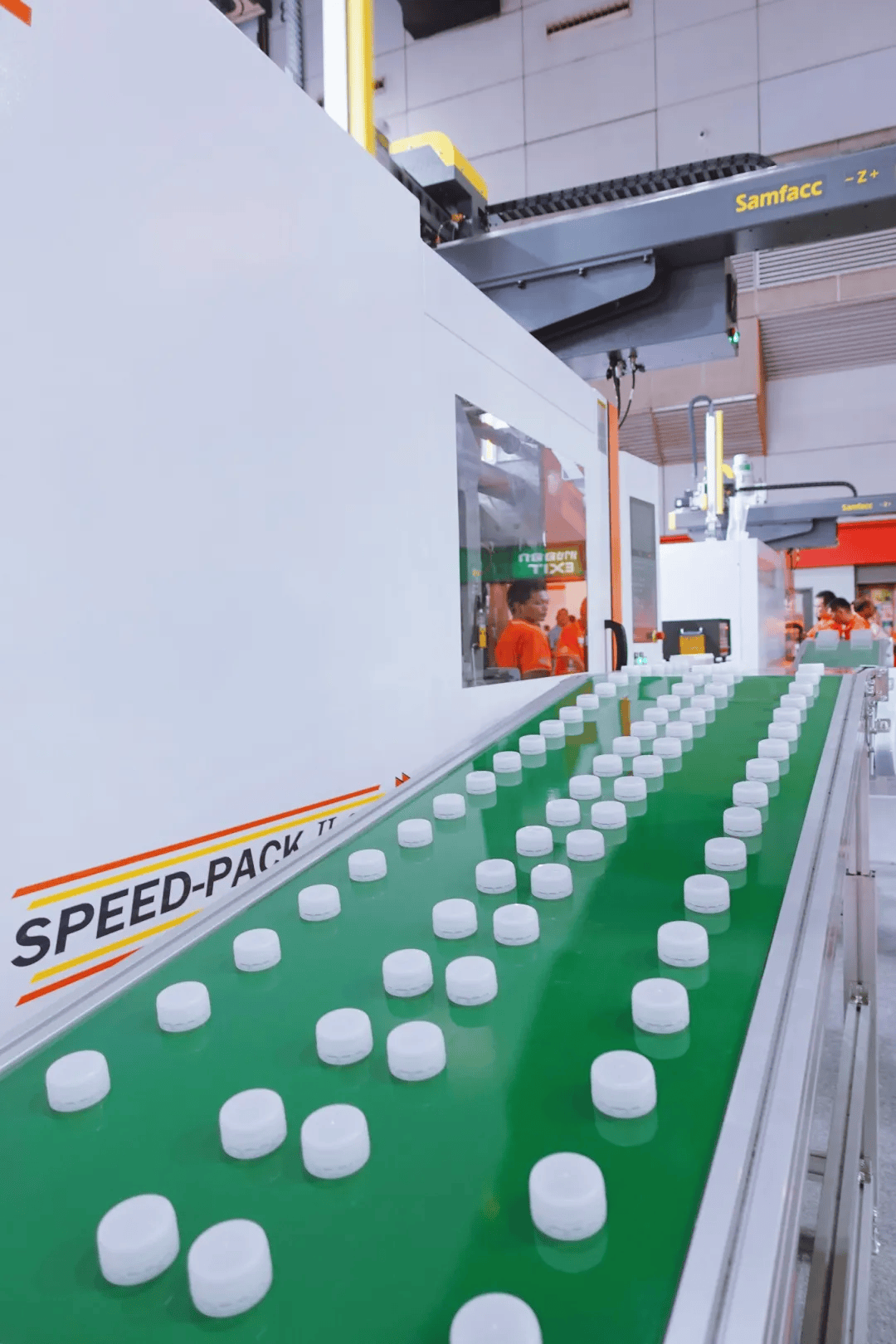 Another machine on display at the show was the high-speed packaging machine SPEED-PACK II, which provides customers in the industry with a comprehensive packaging solution from mould to product packaging. By installing a high plasticizing rate screw and a high-speed injection unit, the injection speed has been increased by up to 51%, and the overall strength of the rigid frame has been improved by 50%. It is also equipped with a new high-response servo motor, which can increase power by up to 29%. A production demonstration of the medical saline cap injection moulding solution was presented on-site.